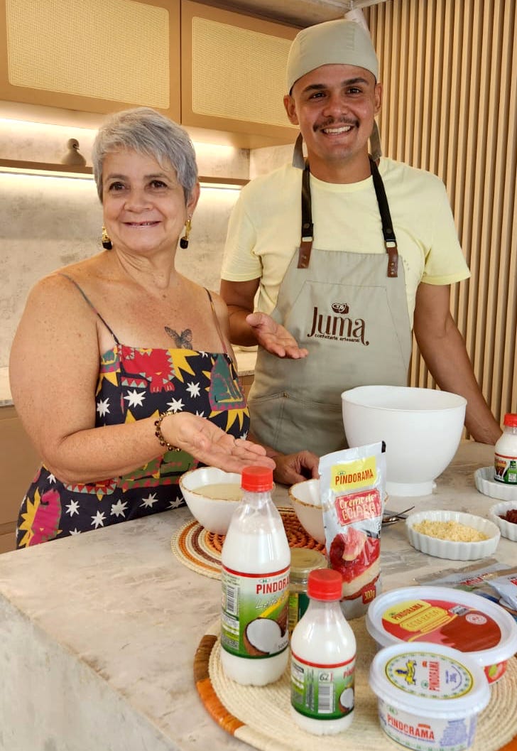 “Eu já uso o leite e o coco ralado da Pindorama, agora acrescentei a goiabada em cubos e o creme de goiaba, também da Pindorama, e achei prefeito para fazer o doce”, disse o confeiteiro Marquinhos, que teve o privilégio de conhecer a Cooperativa e está feliz em fazer parte da história da gastronomia alagoana.