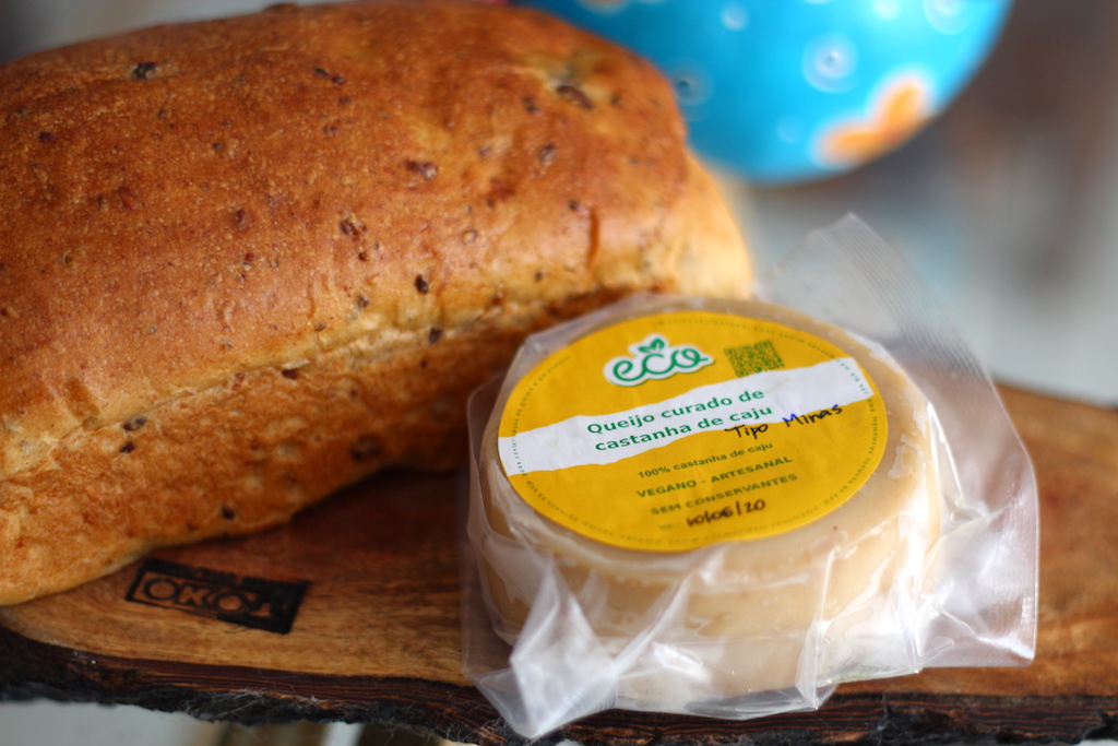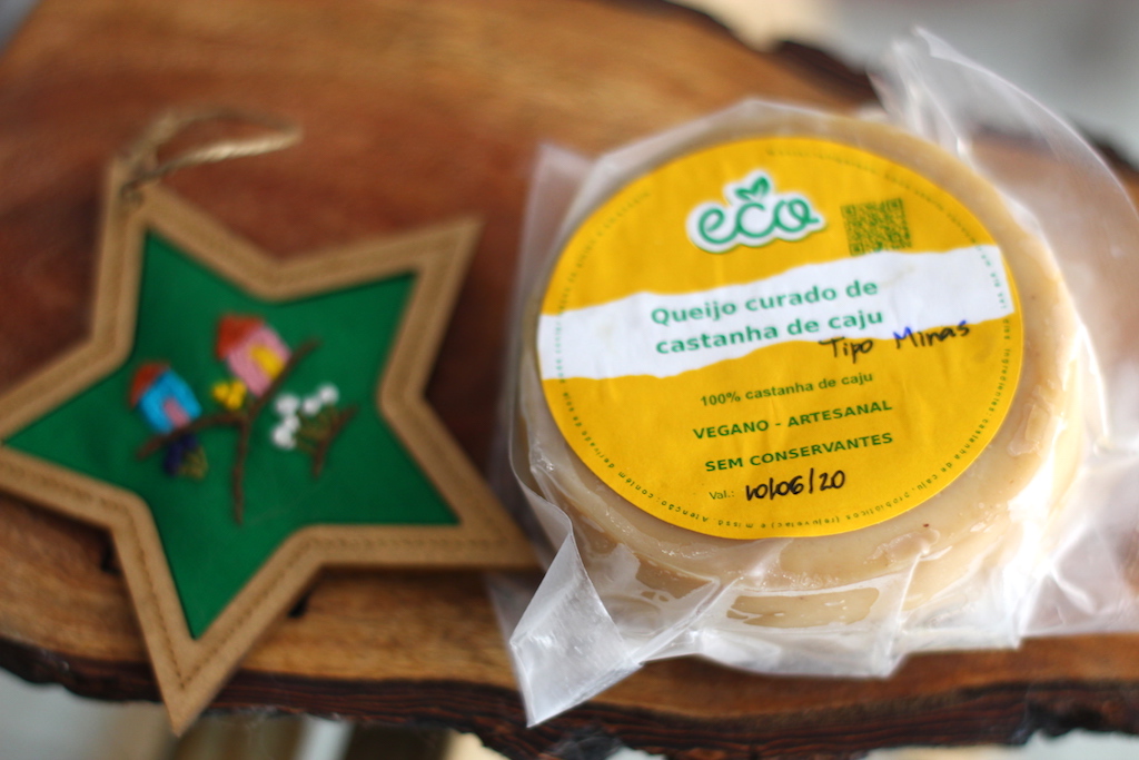 Encontrei o queijo de castanha, ideal para veganos e intolerantes a lactose, na Feira Agroecológica da Praça do Centenário, que acontece todos os domingos. Quem faz os queijos veganos é a bióloga alagoana, Érica Cavalcante Omena.