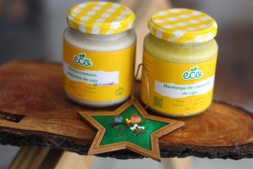 Os queijos são firmes e feitos com 100% de castanha de caju fermentadas e batidas sem nada. Érica também faz requeijão, muzarela, brie e manteiga maravilhoso. “Uso apenas as castanhas até virarem uma pasta bem densa”, conta. Depois, muita técnica para chegar ao resultado.
