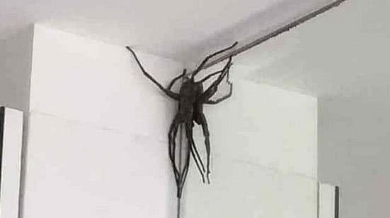 A moradora diz que se deparou com a aranha no banheiro de casa por volta de 13h. "Tomei um baita susto! Quando vi aquela criatur enorme, do tamanho de uma mão aberta, gritei meu marido. Ele achou que eu estava exagerando, até que viu a cena!", relata.