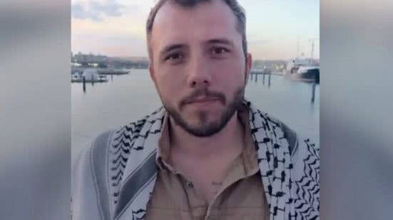 O ativista brasileiro Thiago Ávila é um dos voluntários que estavam no barco humanitário interceptado pelo exército israelense, na noite deste domingo (8).