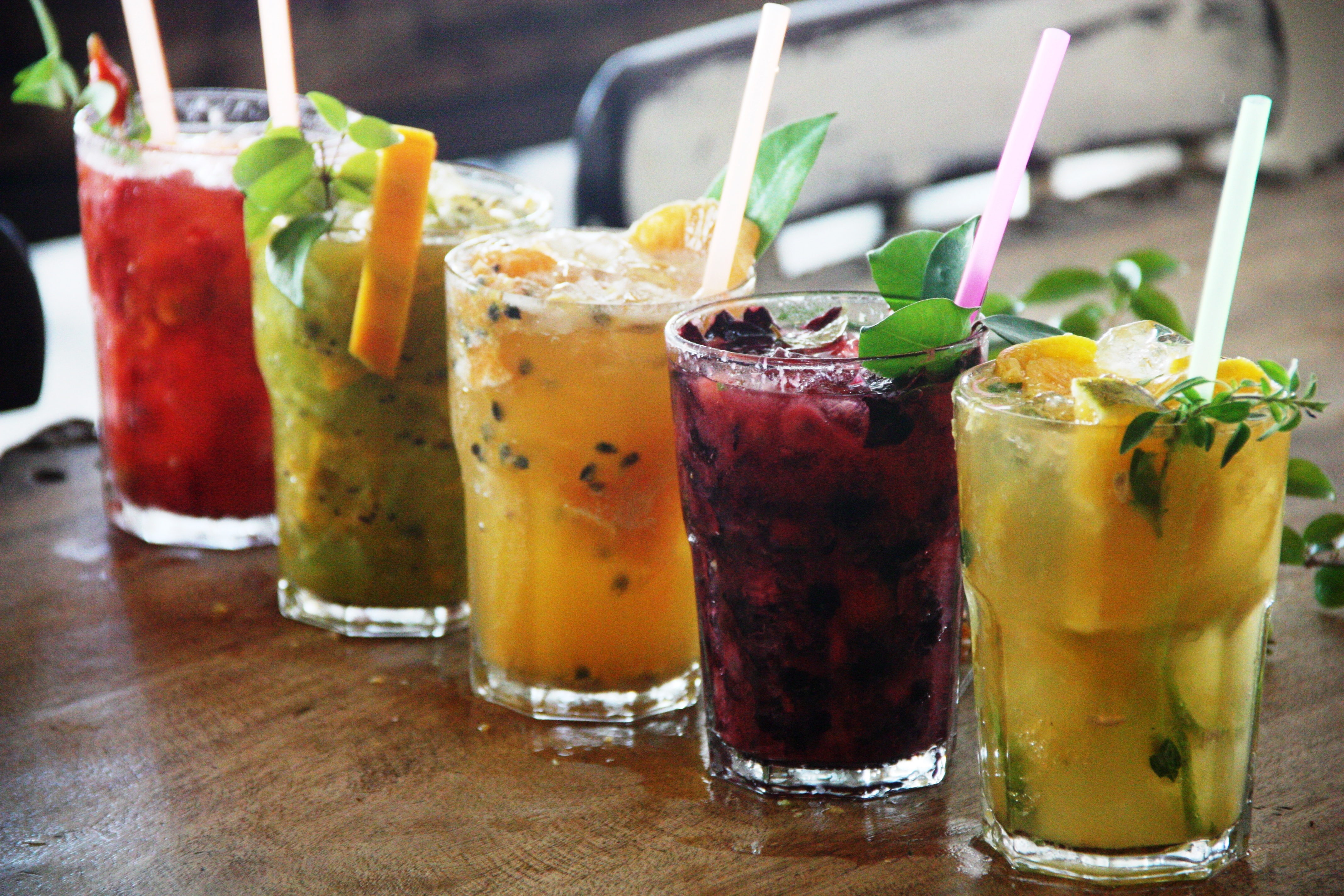 Misturando frutas, ervas e até pimenta biquinho nas caipiroscas, ótima caipifrutas do Divina Gula