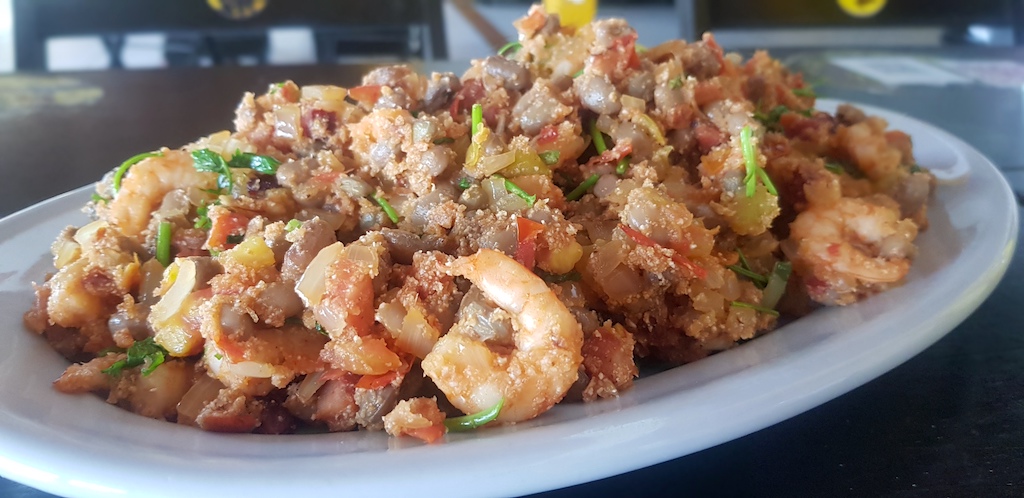 Mariquinha – Bar e Restaurante (@mariquinha_bar_e_restaurante): “Quando não tinha mistura, minha mãe fazia um feijão forte, com osso de boi, bucho, tripa, chuchu, couve e pepino do Pará, era o que mais tinha no quintal”, conta Maria José da Silva, famosa pelo seu bar no Benedito Bentes. Desde criança, a alagoana da Viçosa aprendeu a cozinhar e a cuidar dos sete irmãos. Do bar localizado no conjunto Frei Damião, no Benedito Bentes, saem comidas tradicionais como pirão de ovos, tilápia frita, galinha velha, e a estrela “feijão com tudo dentro”. Na receita, o feijão carioquinha recebe osso de patinho, charque, fato, calabresa. Uma riqueza de feijão, de fazer inveja à rainha da Inglaterra, Elizabeth II (Que Deus a tenha!). Onde fica: Rua C 60, Conjunto Frei Damião, Benedito Bentes. Funciona de terça à domingo, das 11h às 16h.Telefone: (82) 98865-7216