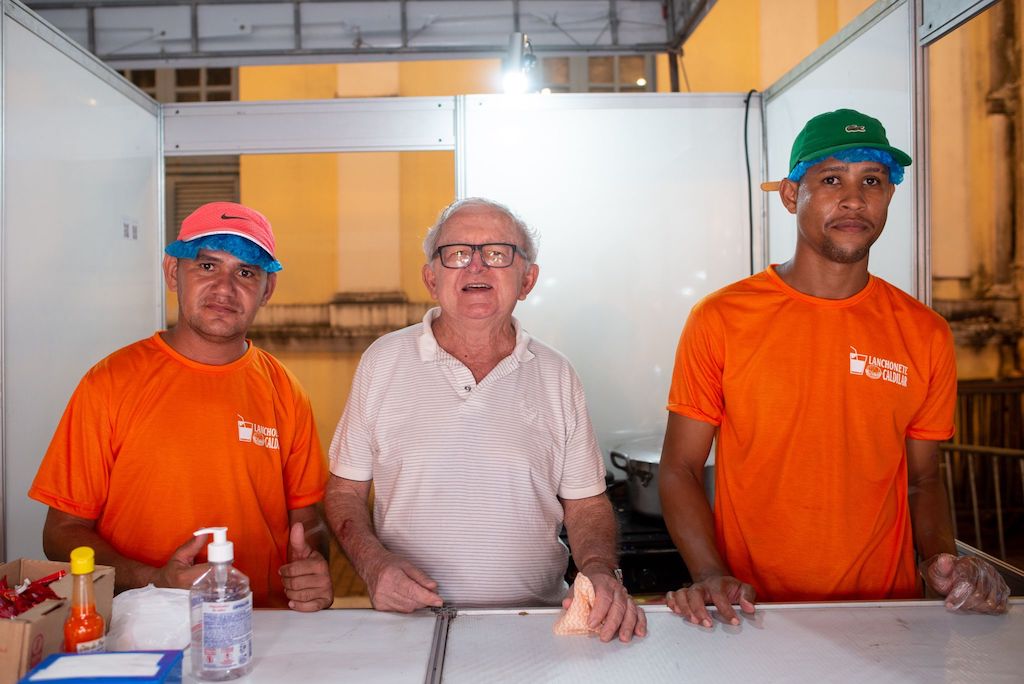 Seu Moacir com seus dois funcionários no Festival Maceió dos Prazeres