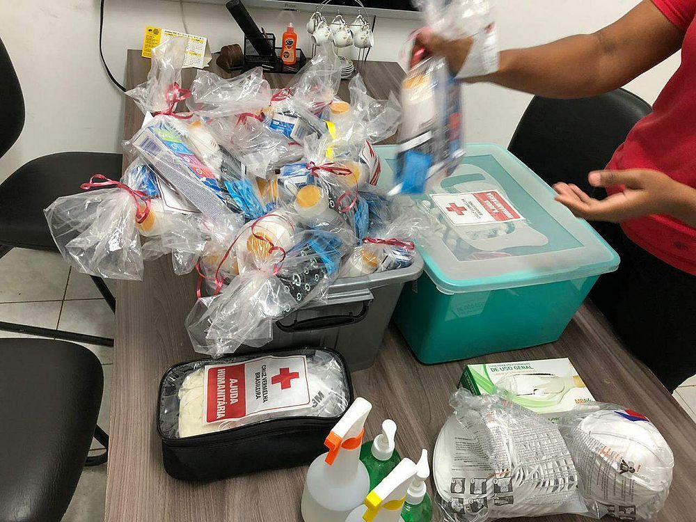 Além do aconselhamento, um kit com máscaras, e vários produtos de higienização foram entregues, junto de um frasco com álcool em gel, preservativos e até lubrificante.