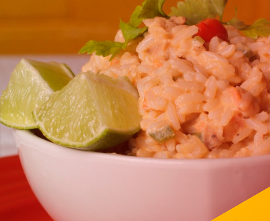 Riso de Tilápia: Arroz cremoso no leite de coco, filé de tilápia e chips de tapioca.