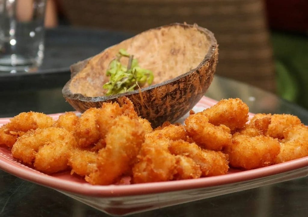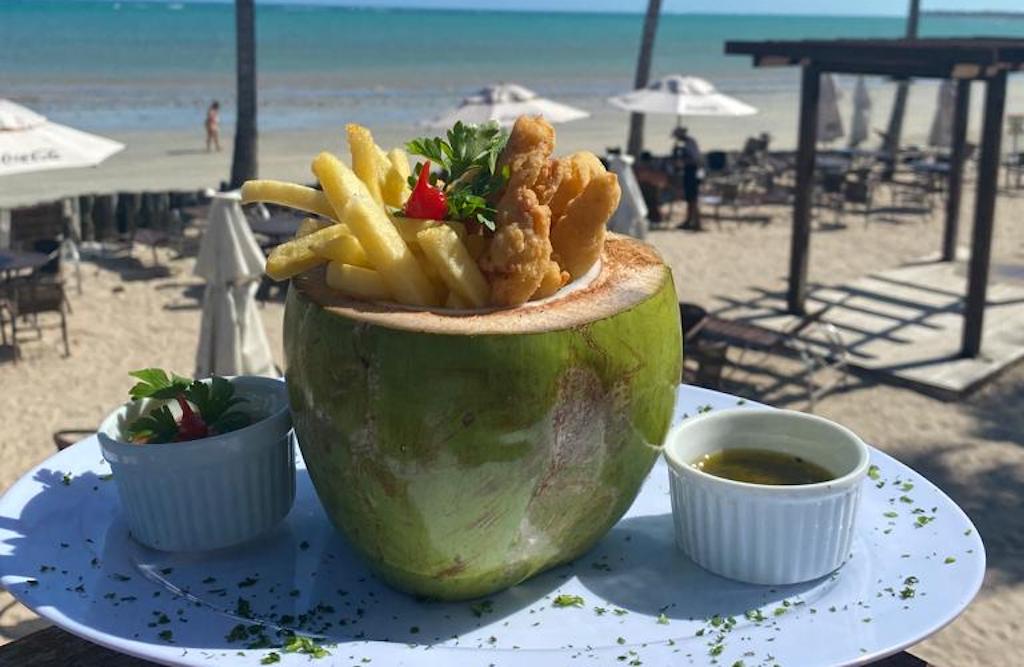Kanoa Beach Bar: Camarão Tropical – Camarão empanado em farinha crocante servido com molho de abacaxi. Orla de Ponta Verde – Av. Silvio Carlos Viana, 25 – Ponta Verde