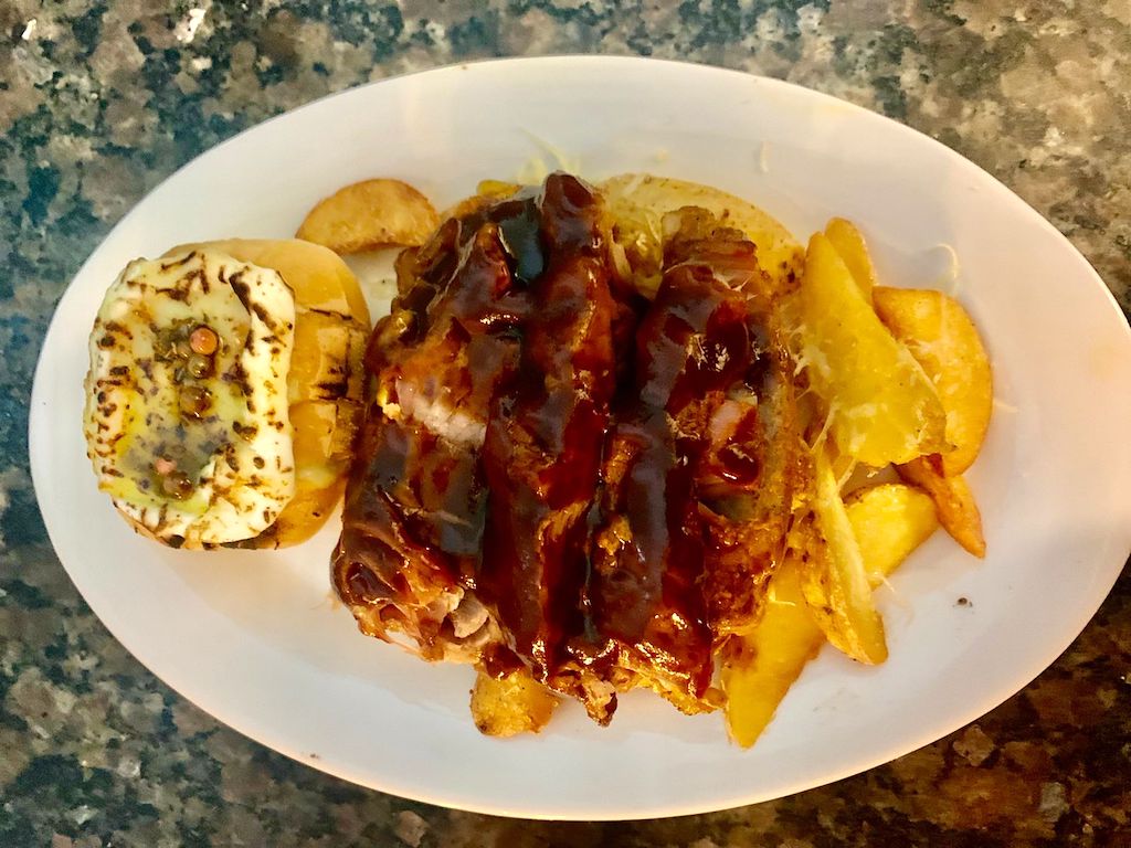 Aki Perto: Trilogia Australiana – Costela suína desossada, defumada ao molho de barbecue, servida com batata rústica e pão de alho. Rua Escritor Antônio Saturnino de Mendonça Júnior , 126-Jatiúca