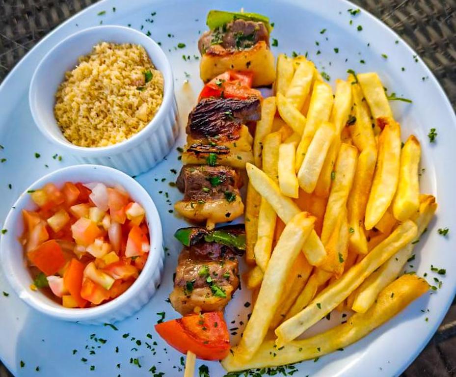 Corais Beach Club: picanha no espetinho com batata frita e molhos gourmet. Raul Angelo, 823 – Ipioca