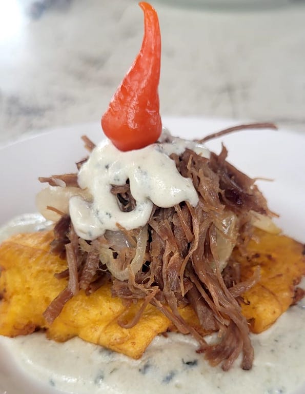 Kazulo: Sol da terra – carne de sol desfiada, puxada na manteiga com banana da terra e molho de queijo. Av. Brigadeiro Eduardo Gomes de Brito, 56 – Cruz das Almas