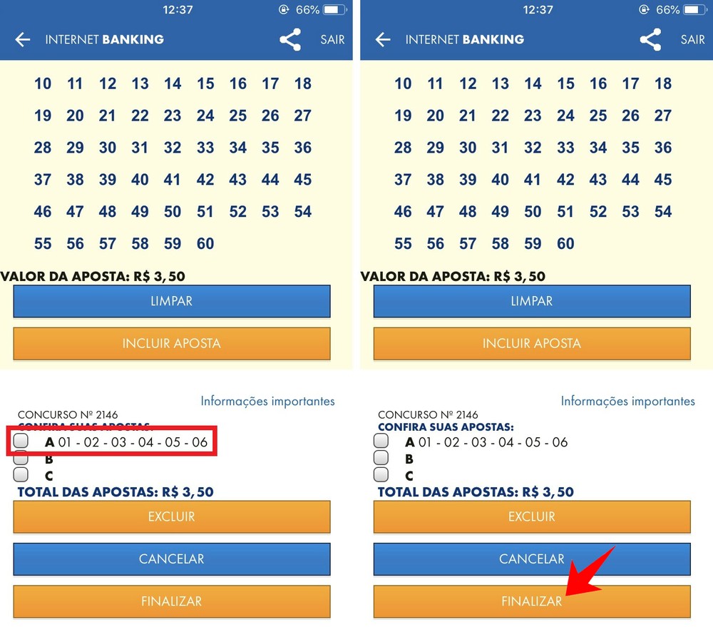Cada aposta custa R$ 3,50 e os usuários podem agrupar até três sequências diferentes no mesmo jogo, com o limite de R$ 500 por dia. O download do serviço é grátis nas lojas oficiais de apps Google Play e App Store.