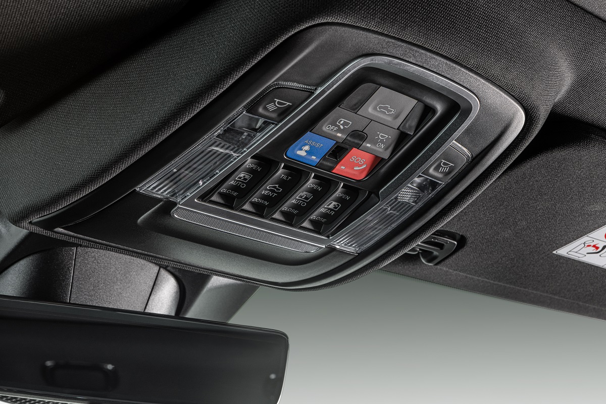 Para completar o conforto e a ergonomia, os pedais de acelerador e freio contam com regulagem elétrica de distância. Para entregar muita comodidade aos ocupantes, o console central oferece duas tomadas de 115V, 9 portas USB (sendo 4 do tipo C, de carregamento rápido), contando as saídas dianteiras e traseiras. Além dos dois porta-copos dianteiros, dois traseiros e as saídas de ar para a segunda fileira.