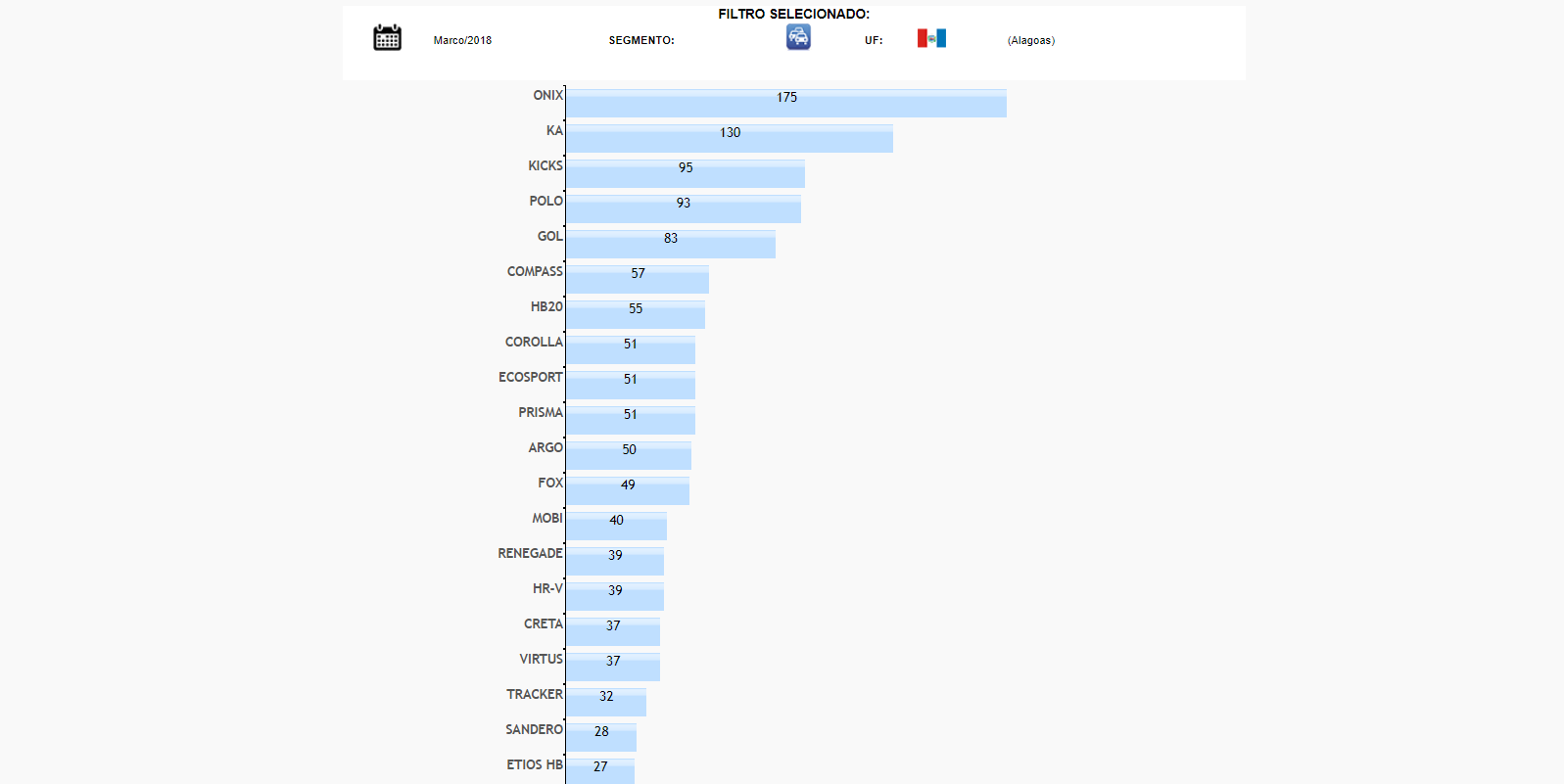 O mês de março foi de retomada de vendas de veículos em todo o Brasil. Em Alagoas os números também comprovam esse crescimento. Confira abaixo o ranking dos 20 modelos mais vendidos em cada um dos segmentos.