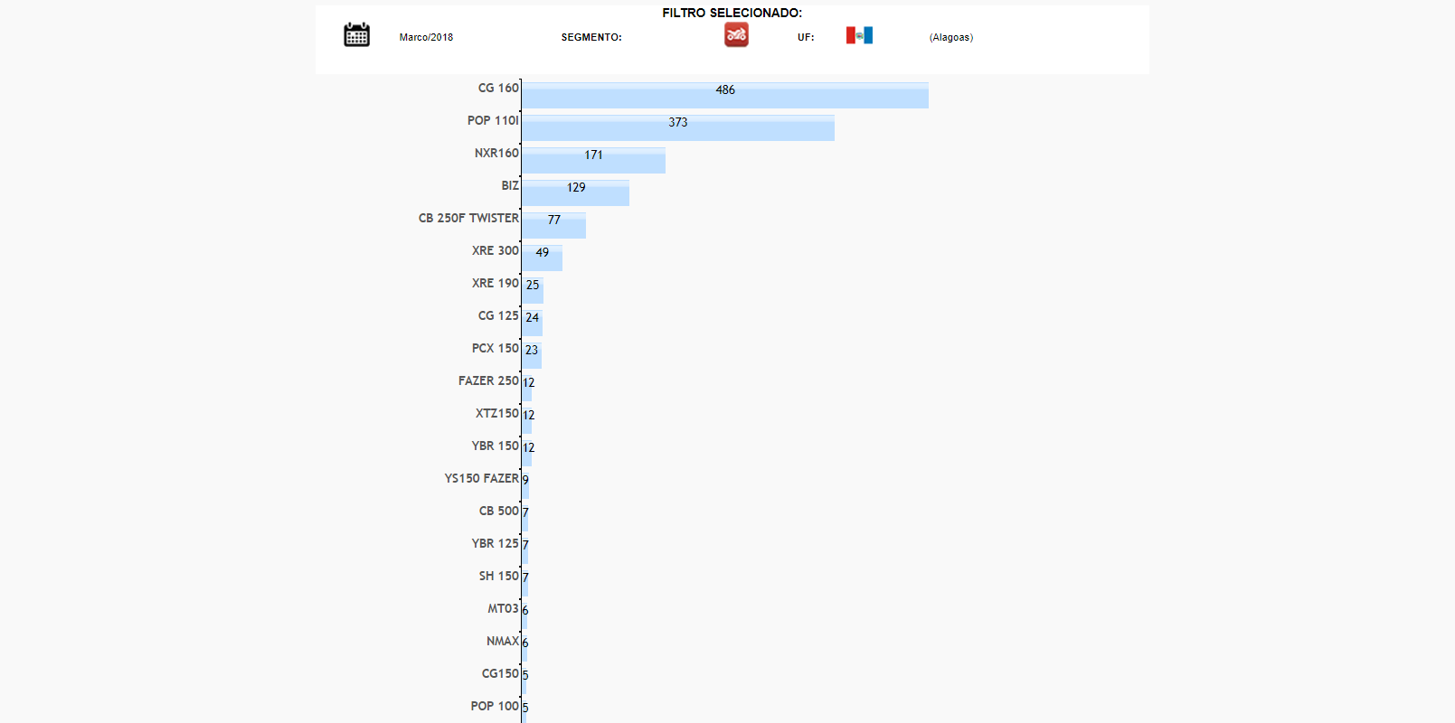 Honda segue absoluta. Só de CG 160 foram 486 emplacamentos, confira o ranking estadual: