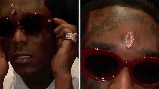 O rapper Lil Uzi Vert surpreendeu a internet ao mostrar o seu novo implante. De acordo com o site Consequence Of Soud, o diamante que colocou na testa está estimado no valor de US $ 24 milhões, o equivalente a R$ 128, 6 milhões.