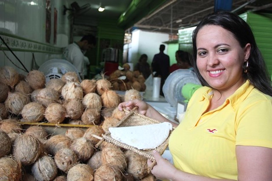 Nas minhas andanças pelo Mercado da Produção de Maceió, a parada obrigatória é para comer tapioca na Cicinha da Tapioca Nosso Xodó, sempre no capricho. Ela segue um ritual: deita a goma, espalha com mão formando o círculo, polvilha coco ralado sem pena, adiciona generosas fatias de queijo coalho, pincela manteiga, “taca” mais um pouquinho de goma e vira na chapa. E pronto, é só se esbaldar no pão sem glúten nordestino e, claro, peça um copo de café e leite para acompanhar. Mas também, Benza Deus é o bolo de milho, de macaxeira, massapuba e do leite da Cicinha. É bom demais!