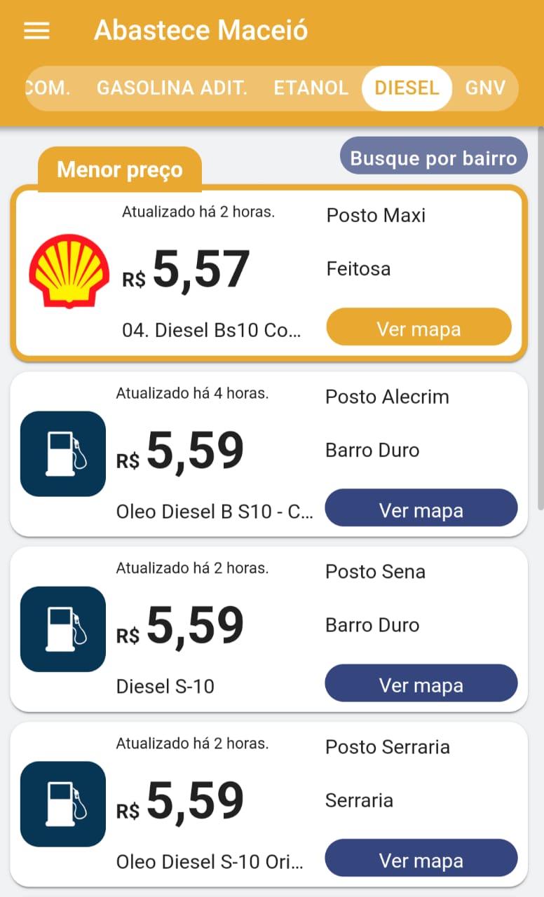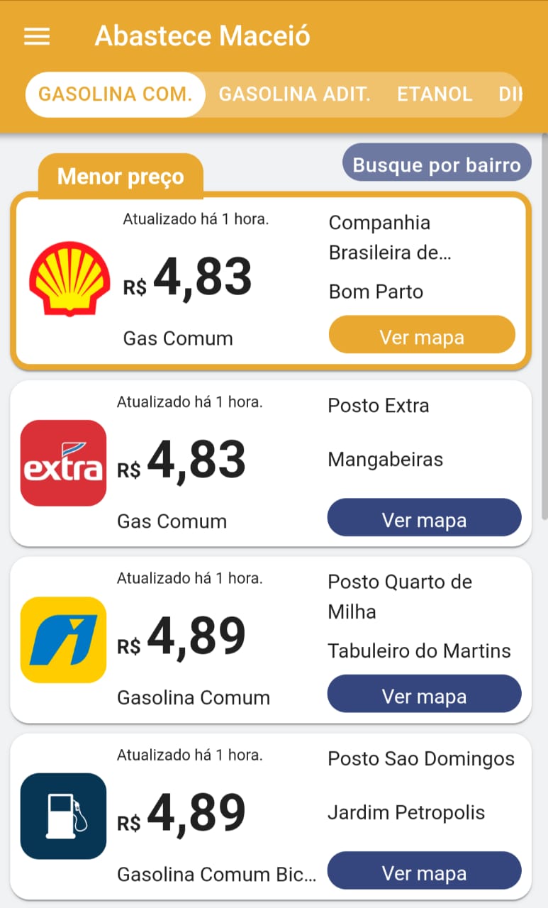 O valor menor do litro comercializado era R$ 4,83 em um posto no bairro da Cambona e chegava a R$ 5,88 em um posto na Serraria. Mas a média praticada em muitos postos já era R$ 4,99. Veja: