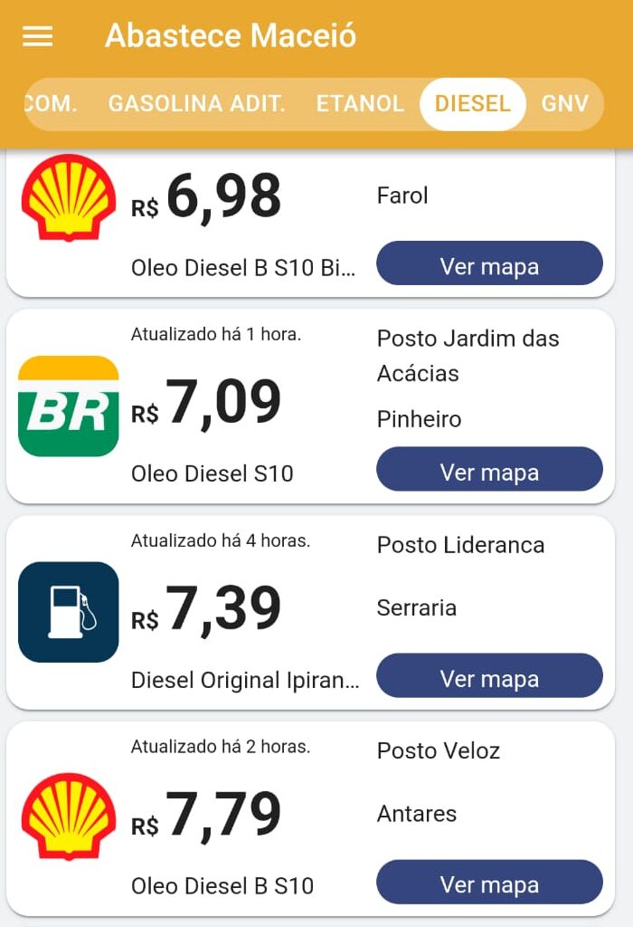 O Diesel que teve redução anunciada pela Petrobras, estava custando a partir de R$ 5,57 o litro em um posto no Feitosa e chegava a R$ 7,79 o litro em um posto no Antares: veja: