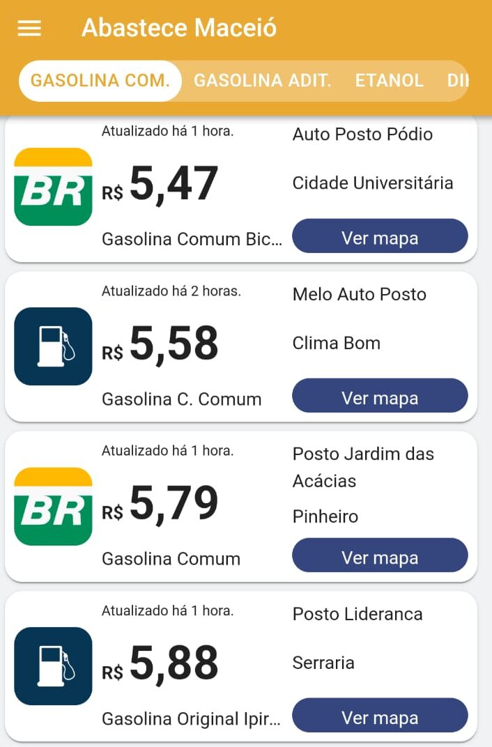 O Pajuçara Auto fez uma pesquisa do preço do litro da gasolina comercializado na tarde desta terça-feira, dia 28/02, no aplicativo Abastece Maceió, que atualiza em tempo real o que é comercializado pelos postos.