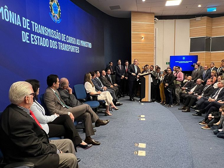 Em seu discurso de posse, o emedebista disse que pretende concentrar esforços na ampliação da malha ferroviária do país, um pedido de Lula.