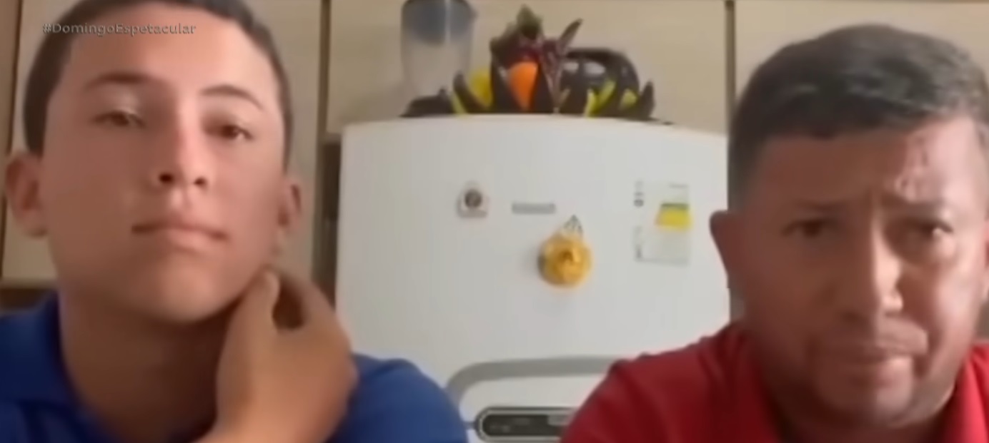 O Domingo Espetacular reproduziu o vídeo em que Vitinho e o pai, José Vieira dos Santos, conhecido como Dedé, aparecem para falar sobre o caso. Na ocasião, apenas o pai fez declaração e negou que o filho tivesse cometido estupro.