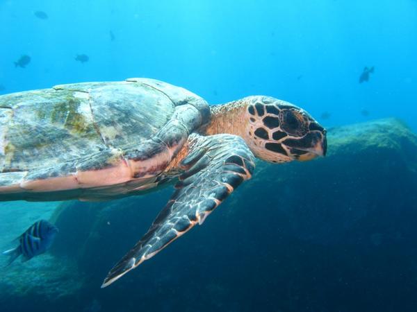 “Ela come alga e grama marinha. O consumo ajuda no equilíbrio do sistema porque as algas competem com o coral por espaço. Por isso, as tartarugas marinhas são peças fundamentais para um recife mais saudável neste ambiente”, defende Robson Santos.
