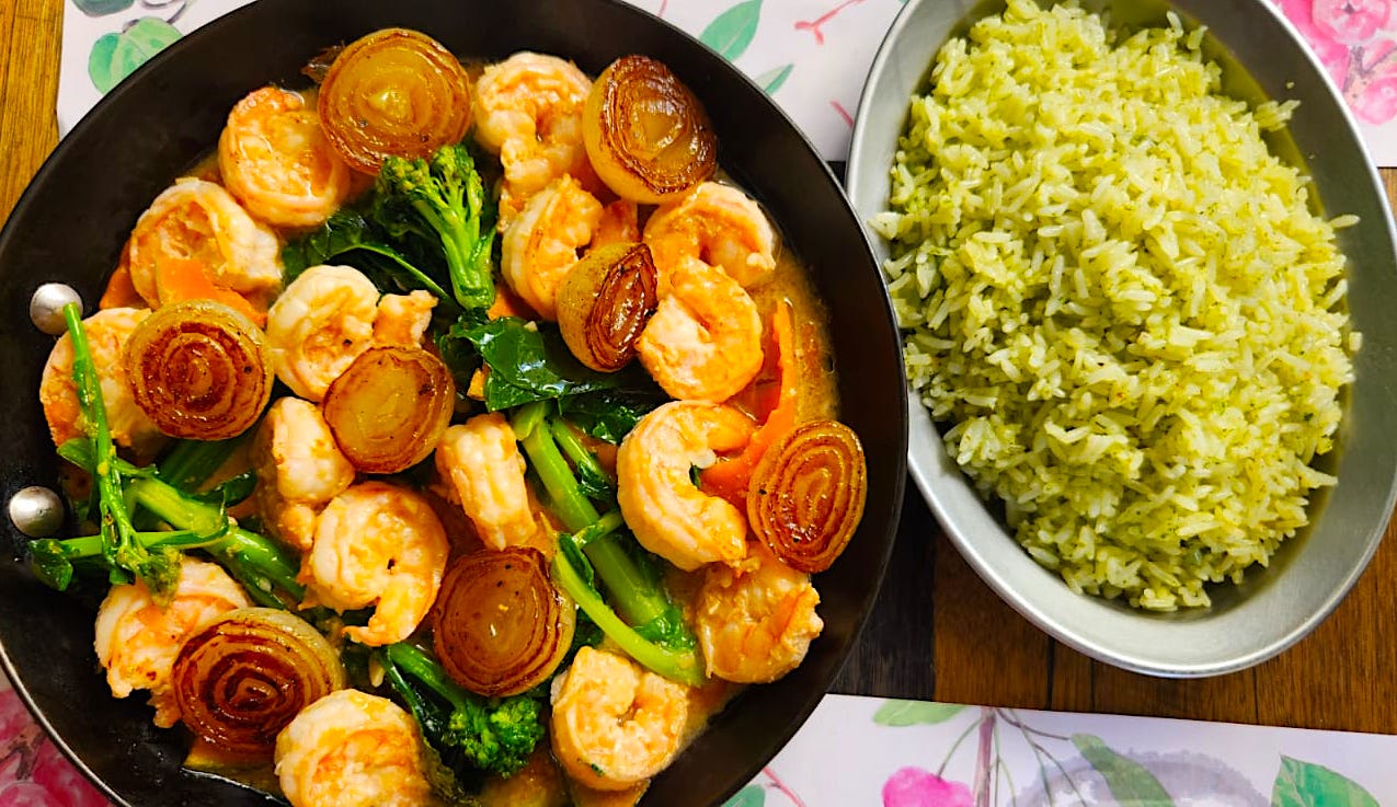 Versão Reteteu do ‘Camarão na Moranga’ com arroz de coentro