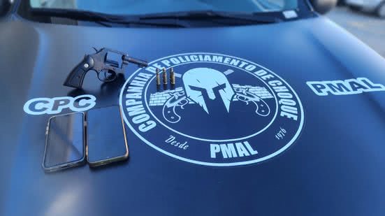 Durante a realização das buscas, os militares da Companhia de Policiamento de Choque (CPChoque) encontraram um revólver de calibre 38 com seis munições intactas e dois smartphones.