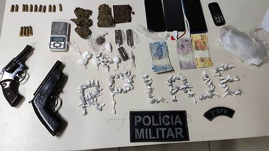 Além disso, a polícia apreendeu três aparelhos celulares e R$ 45 em espécie. Todo o material foi recolhido e os eletrônicos vão ser analisados pela perícia.