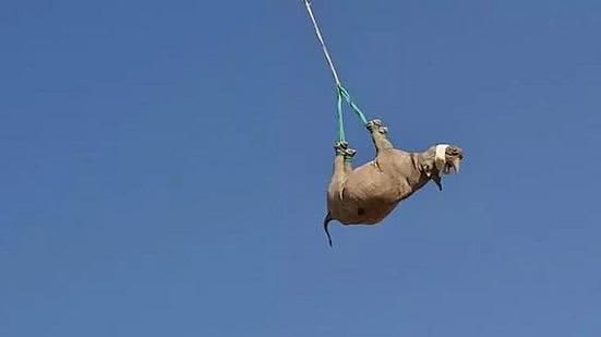 A cena de um rinoceronte voando de cabeça para baixo, suspenso em um helicóptero e balançando acima da savana africana, parece comicamente surreal. Mas, para o rinoceronte-negro, voar para um novo território não é brincadeira, e sim questão de pura sobrevivência.