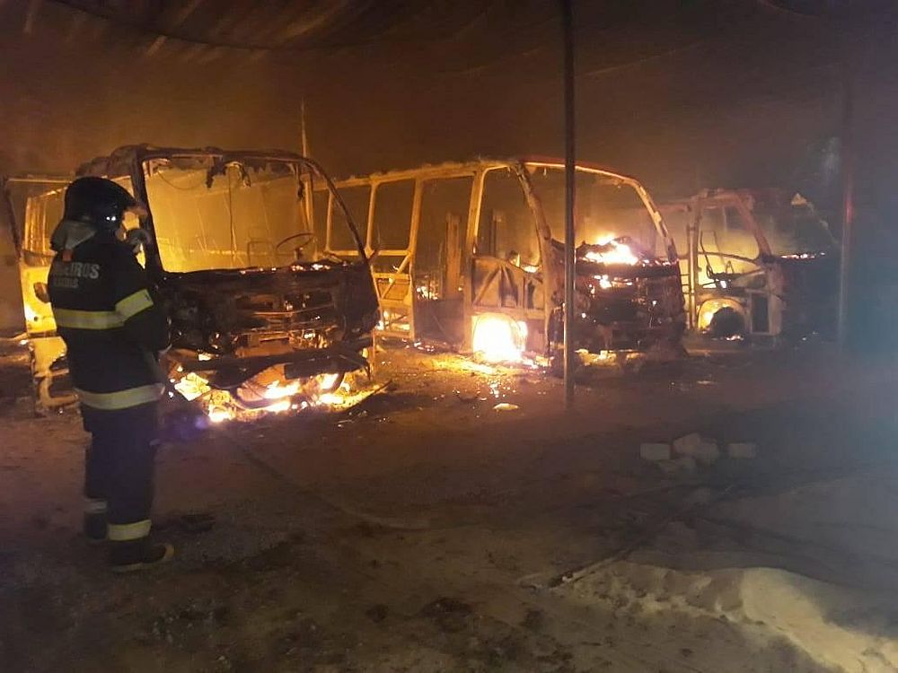 Um incêndio na madrugada desta terça-feira (24) destruiu um galpão onde estavam estacionados quatro micro-ônibus que faziam o transporte de passageiros entre a cidade de Rio Largo, na região metropolitana, e Maceió. O fato foi registrado na localidade conhecida como Cachoeira.