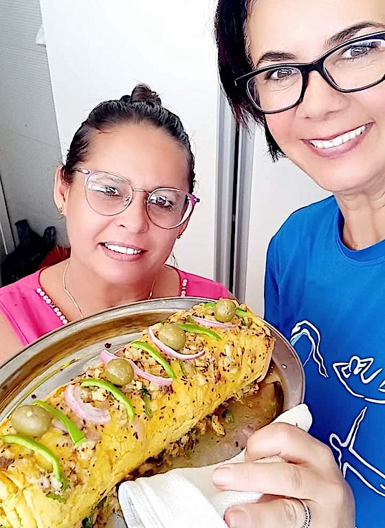 Luciana e Tereza fizeram a receita do rocambole com sucesso