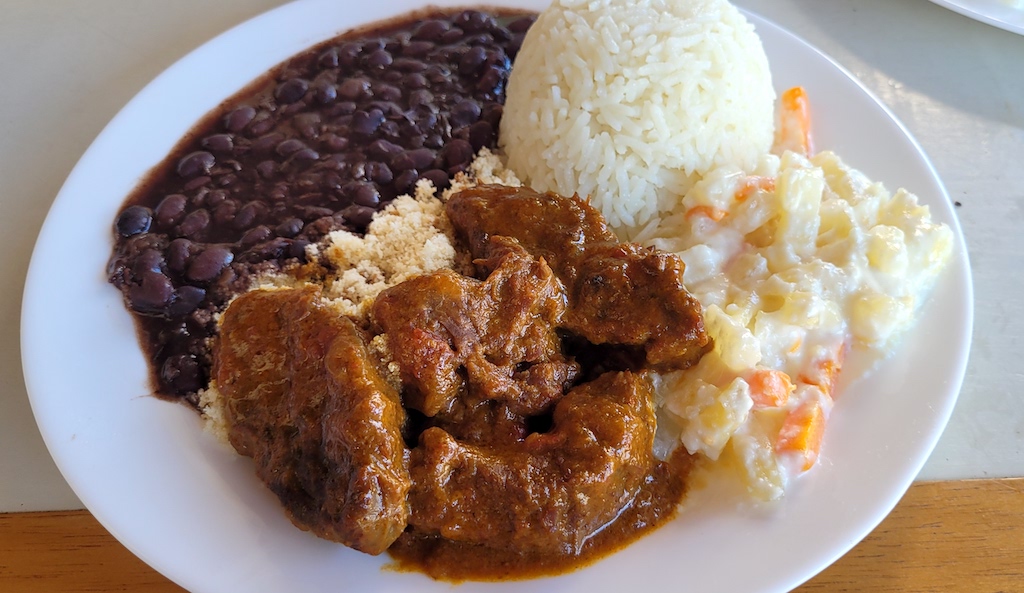 Guisado paulista feito com acém ou músculo com seu caldinho e com direito a dois acompanhamentos