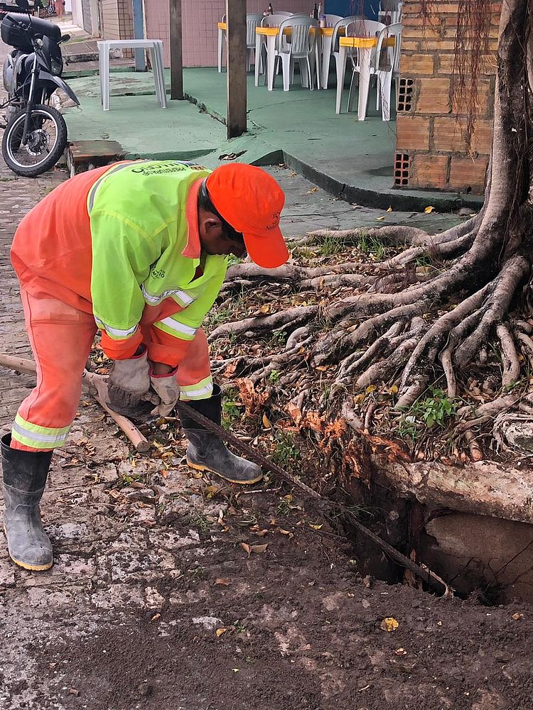 Na manhã desta segunda-feira (23), técnicos da Compdec e da Secretaria Municipal de Infraestrutura (Seminfra) começaram o serviço de recuperação da galeria.