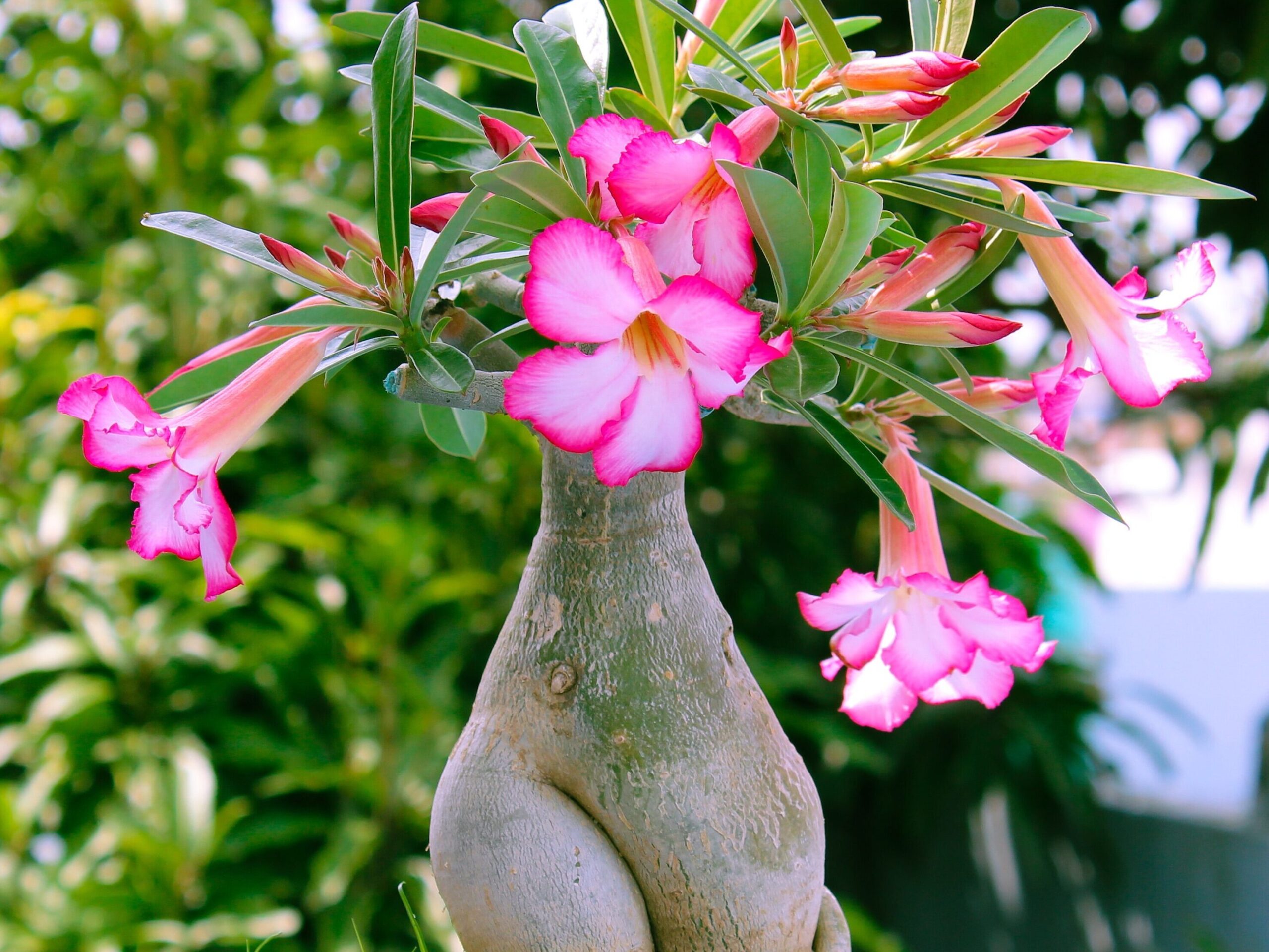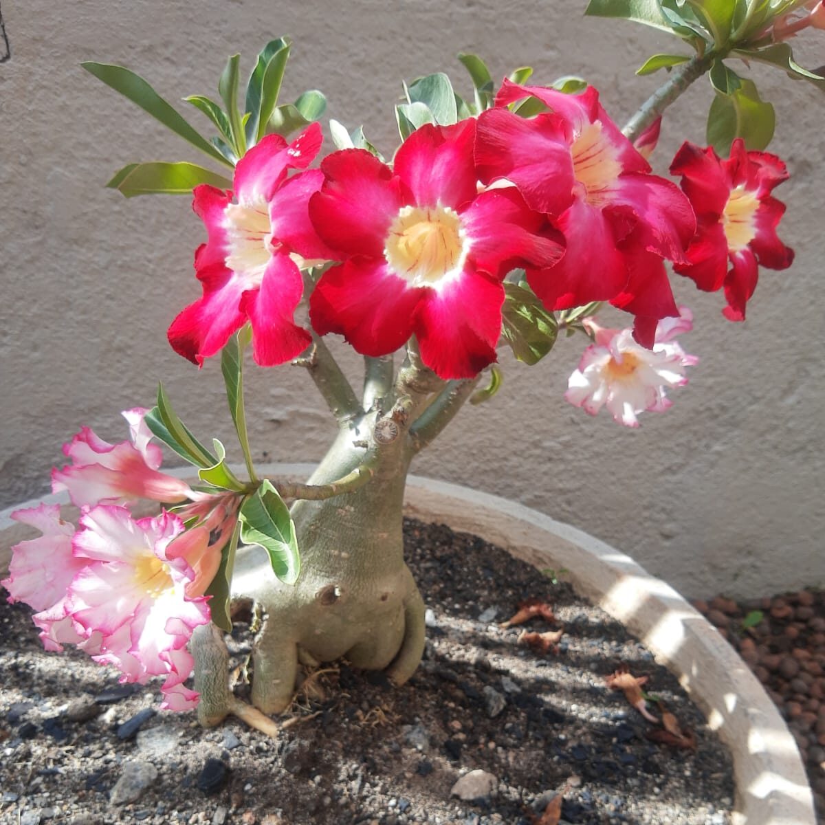 Você já deve ter visto em algum lugar ou deve ter uma em casa, eu mesmo tenho 2!! A rosa do deserto (Adenium) vem ganhando cada vez mais destaque no Brasil, sobretudo nas regiões mais quentes e secas do país a rosa do deserto, sendo bastante valorizada por suas flores vibrantes, com pétalas dobradas ou bordas contrastantes, além de suas formas esculturais. São originárias das regiões áridas da África Oriental e da Península Arábica, e se adaptaram muito bem às condições do nordeste brasileiro. Suas raízes e caules grossos armazenam água, permitindo que sobreviva em ambientes com pouca umidade.