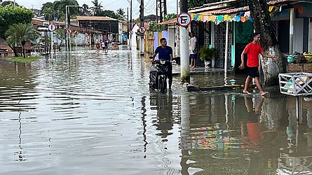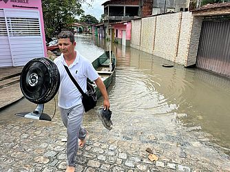 ► MARECHAL DEODORO - Marechal Deodoro é o segundo município com mais desalojados e desabrigados, segundo o boletim atualizado pela Defesa Civil estadual na manhã deste domingo (09). De acordo com o que foi divulgado, são 3.004 pessoas afetadas pelas chuvas e que tiveram que sair de suas casas. Com muitas ruas alagadas, o município resolveu antecipar o período de recesso escolar para esta segunda, 10 de julho. Veja imagens do repórter Netto Motta, da TV Pajuçara: