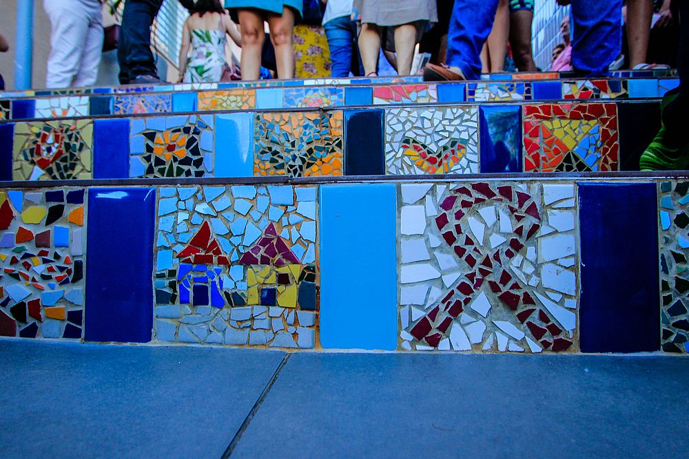 A escadaria recebeu peças de mosaico que foram feitas em oficinas com curadoria da artista plástica Marta Arruda, madrinha do projeto que reuniu cerca de 1.700 voluntários para colaborar com a revitalização, entre servidores públicos, estudantes e educadores. “O que posso dizer hoje é que todos aproveitem, usem o espaço, tragam as crianças para o lazer cultural, porque é um local de inspiração. Estou muito feliz em entregar esse presente para Maceió que marca os meus 25 anos de trabalho com mosaico em projetos sociais”, expressou a artista.
