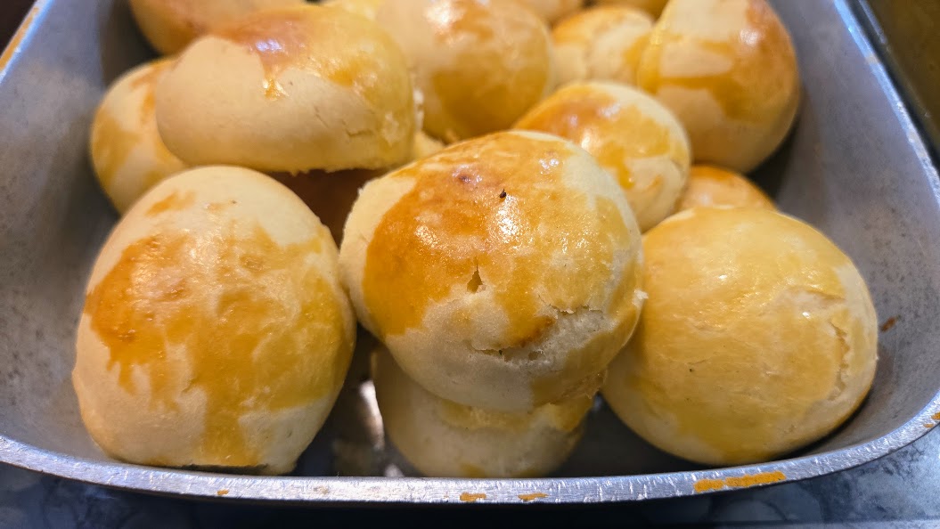 Depois do pudim, vem ele: o pão de batata. Macio, redondinho e recheado com queijo coalho. Impossível comer só um.