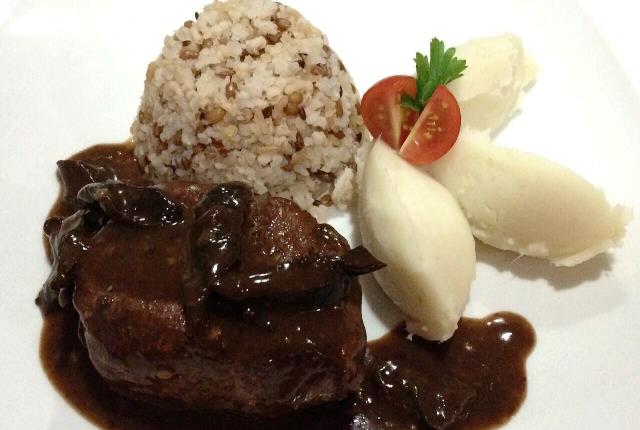 Não está em promoção, porém é divino e eu indico, o bacalhau com grão de bico e batata doce. Acompanha ovos cozidos, tomates, azeitonas, berinjela, abobrinhas, chips de alho e pimentões coloridos. Alguns fios de azeite aromatizado (com ervas) são mais que perfeito. Este é de pedir bis.