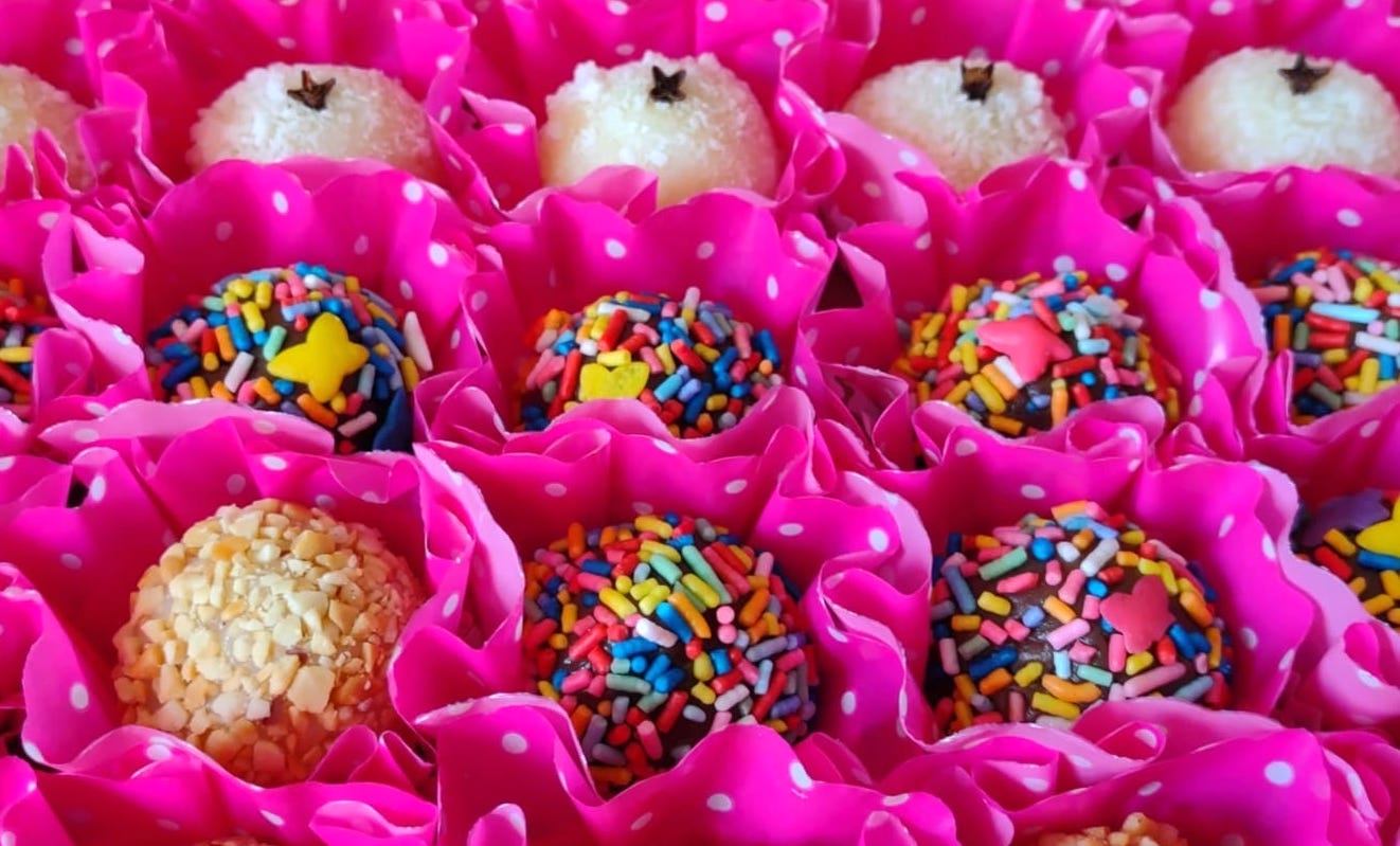 No cardápio tem brigadeiro, surpresa de uva, casadinho, castanhas, ninho, ninho com Nutella, tortelete, beijinho, entre outros doces de festa. Já no time de salgados entram as empadas de camarão, coxinhas, canudinhos, pastéis de forno, bolinhas mistas e bolinho de bacalhau. Os bolos temáticos são nos tamanhos mini, P, M e G. A empreendedora também monta cestas de café da manhã.
