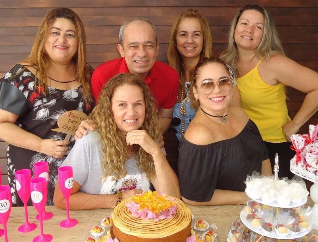 Kélia (vestido preto com flores) com os irmãos Araken (falecido), Ilka, Karina, Arabel e Herbia