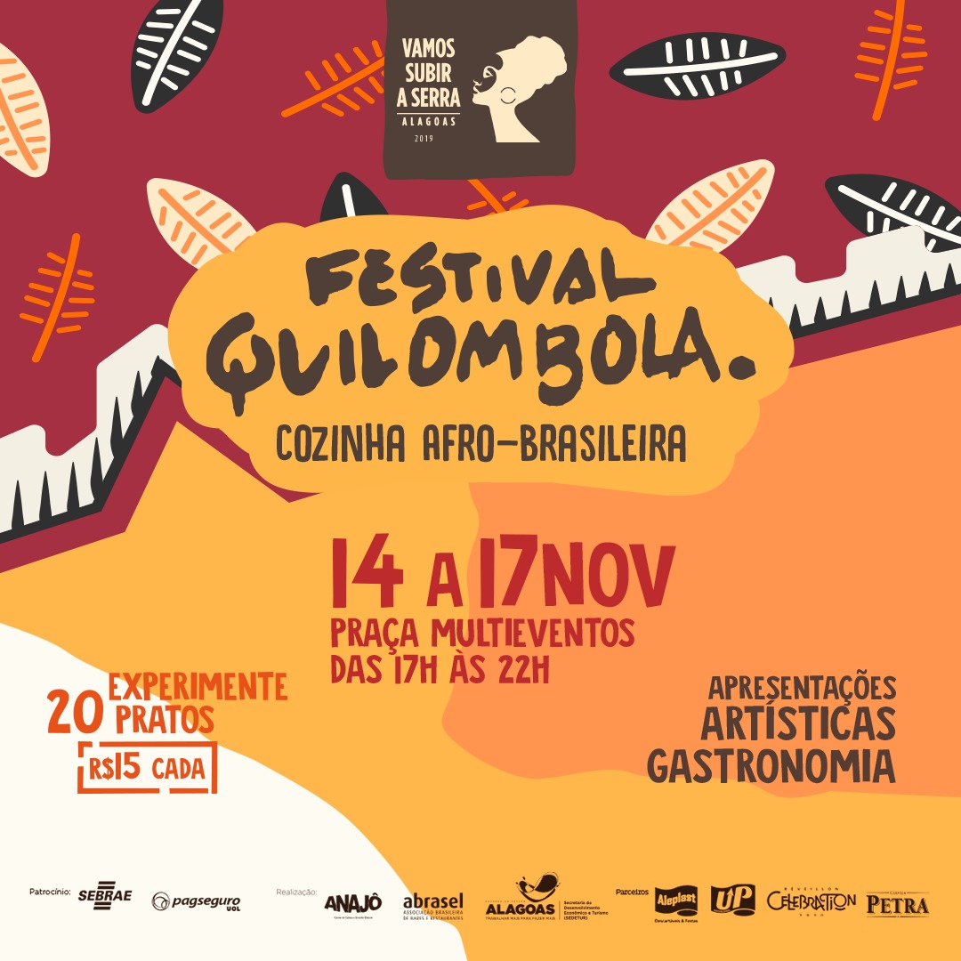 O 4º Festival Quilombola é patrocinado pelo Sebrae e PagSeguro. Realização: Secretaria de Estado do Desenvolvimento Econômico e Turismo (Sedetur), Associação Brasileira de Bares e Restaurantes (Abrasel) de Alagoas e Centro de Cultura e Estudos Éticos Anajô.