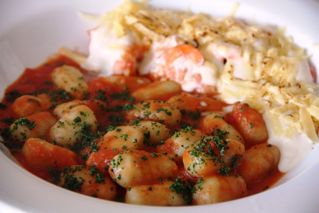 Camarões – Nhoque de batata doce ao molho de tomate com camarões é outra novidade do restaurante. O camarão vem como molho e queijo, eu prefiro o crustáceo apenas no azeite e ervas. O chef Antonio disse que pode servir o crustáceo sem o molho. Adorei saber.