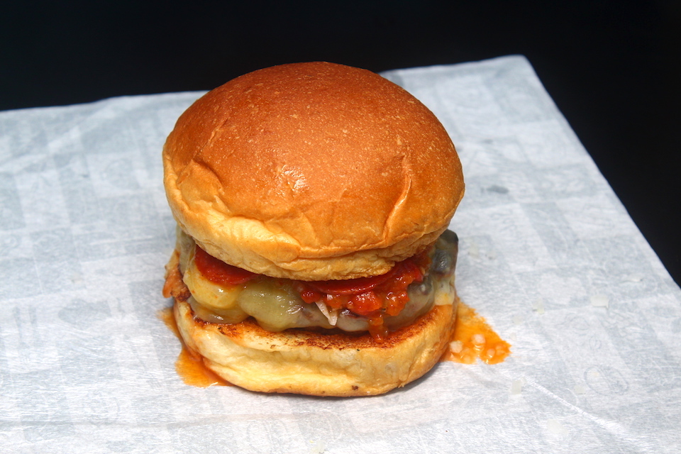 Halloween Burger: peperoni, cebola picada e molho de tomate caseiro