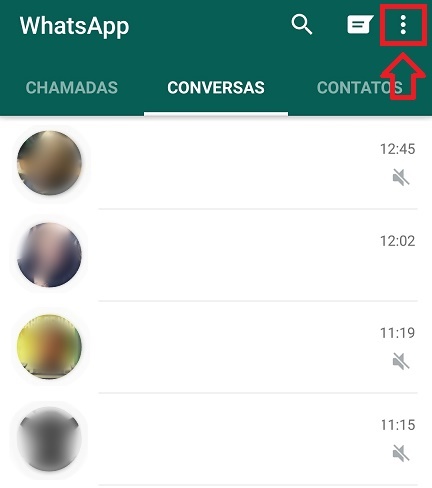 Abra o WhatsApp normalmente e vá até as configurações. Toque nos três pontos que ficam no canto superior direito da tela.