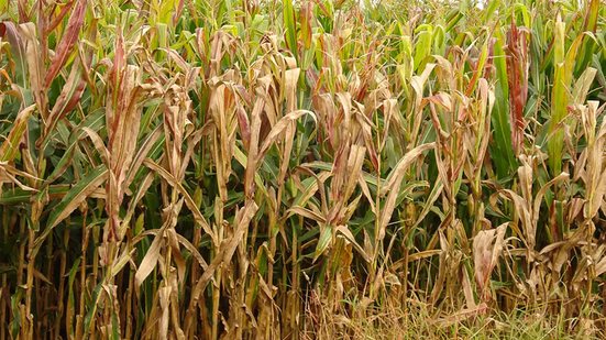 A doença se desenvolve no milho de duas formas: o pálido e o vermelho. Também altera a coloração da planta e também leva ao aparecimento de estrias, além, claro, de afetar a produção de grãos.
