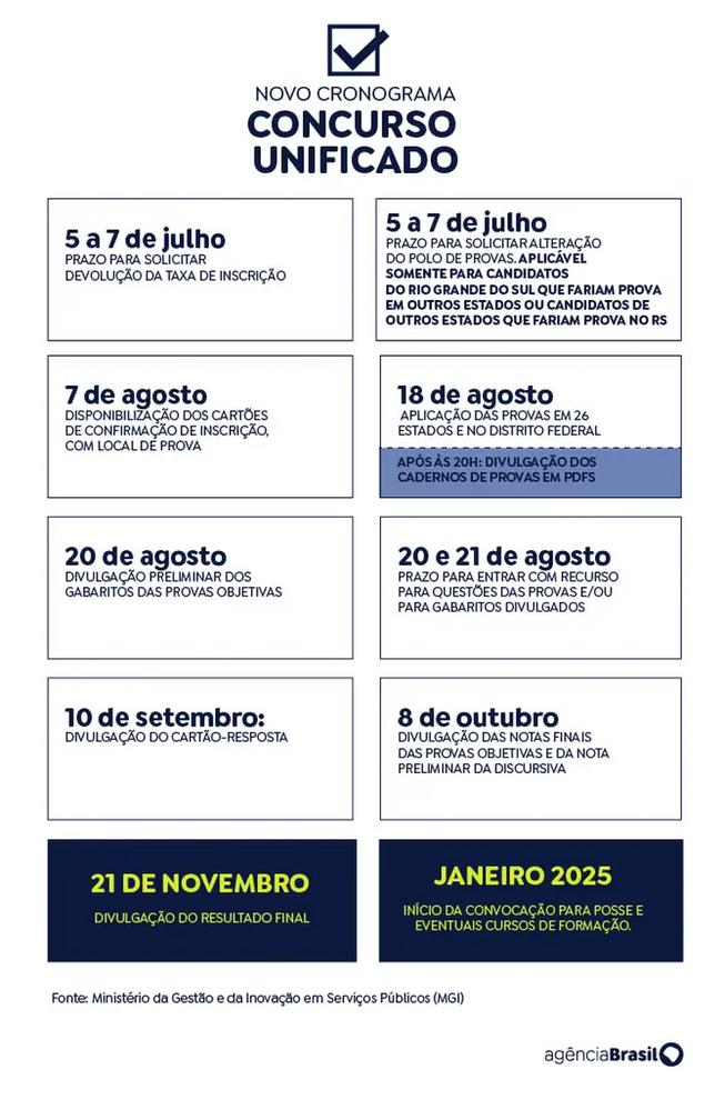 Cronograma do Concurso Nacional unificado (CNU) - Arte/Agência Brasil |
