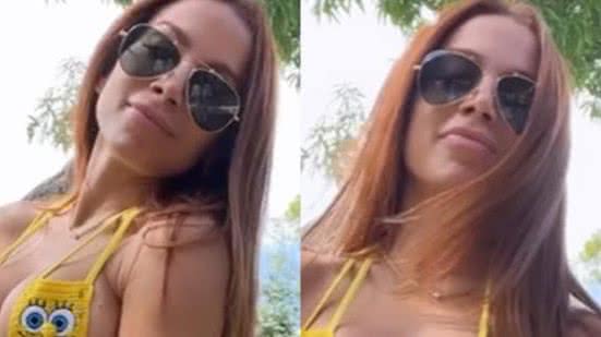 A estrela surgiu com um biquíni amarelo com amarração na cintura e a estampa do personagem Bob Esponja. O modelito é da marca GCDS e é vendido por 360 dólares – cerca de R$ 1.800. Nas imagens, ela dançou o seu novo hit e encantou seus fãs.