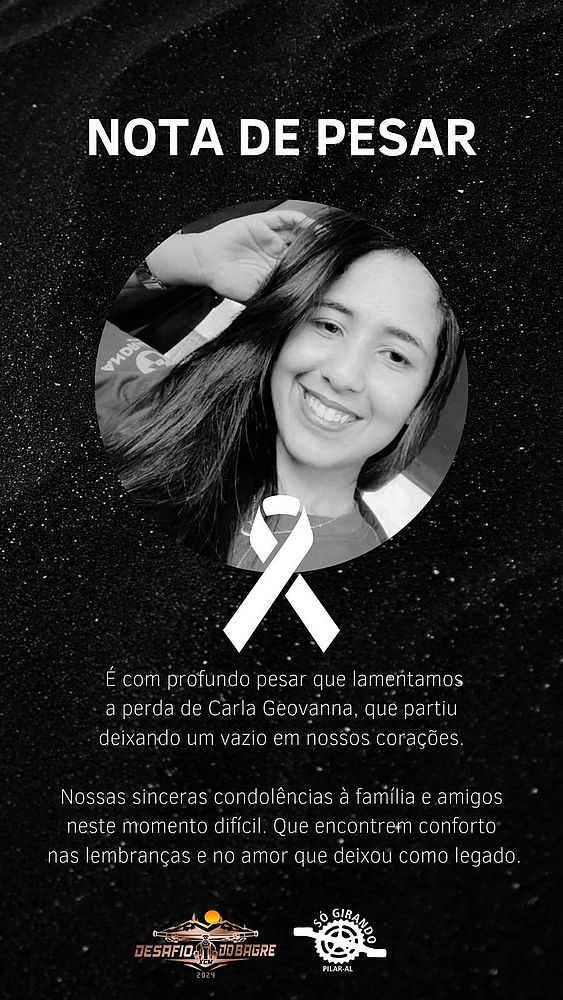 Expressamos nossos sentimentos mais profundos à família, amigos e companheiros de pedalada de Carla Geovana. Sua partida deixa uma imensa lacuna em nossa comunidade, e sua paixão pelo ciclismo certamente será lembrada com carinho por todos que tiveram a oportunidade de conhecê-la.