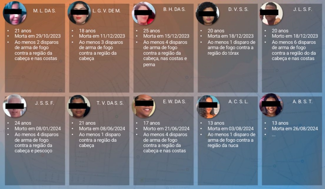 “Nenhuma delas tem envolvimento com facção criminosa. Identificamos 10 vítimas, três delas eram do sexo masculino e sete mulheres, todas com o perfil muito semelhante, morenas, jovens, geralmente de cabelo cacheado, e dentre elas tinha uma mulher trans também com esse mesmo perfil físico”, explicou Gilson Rego.